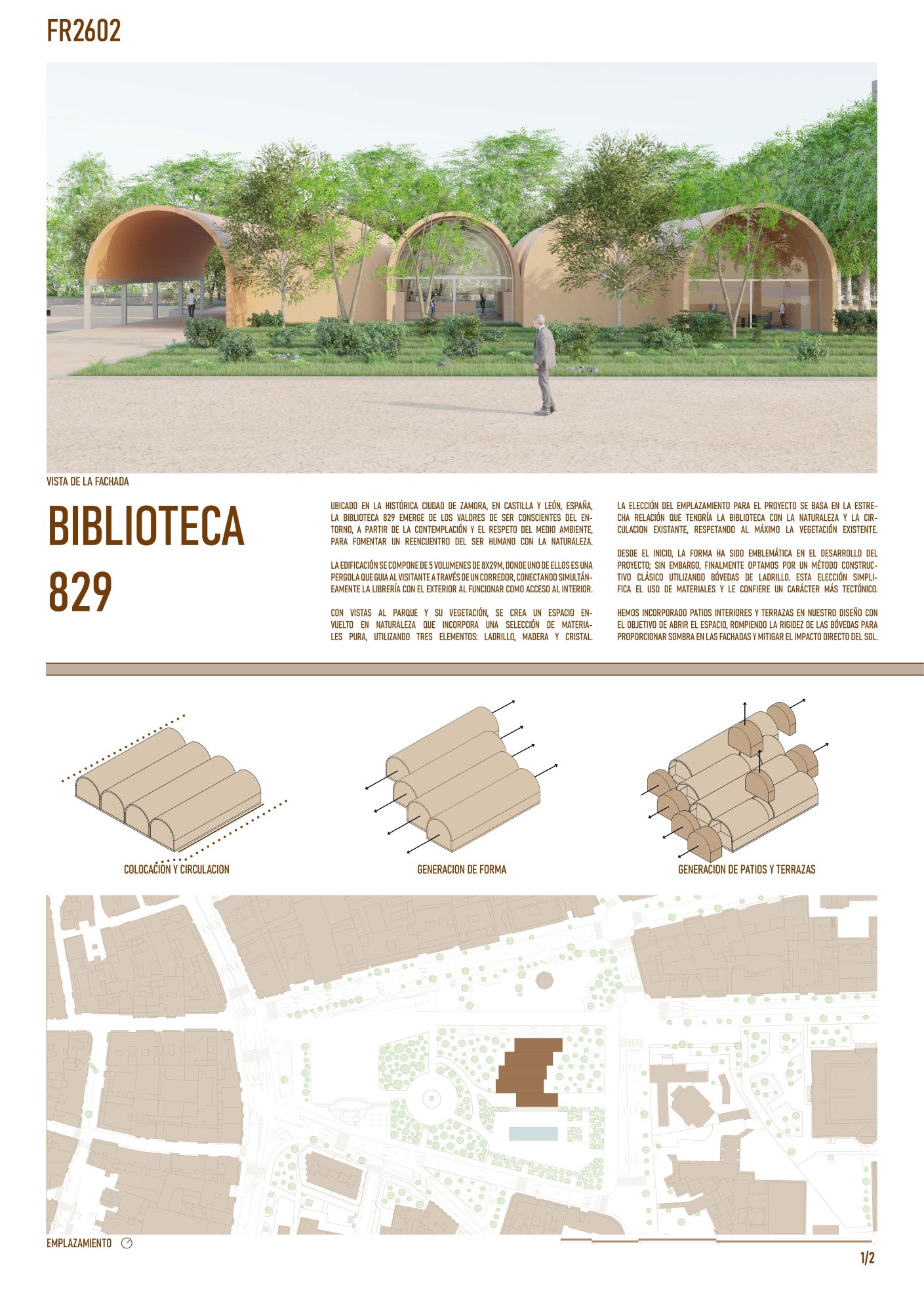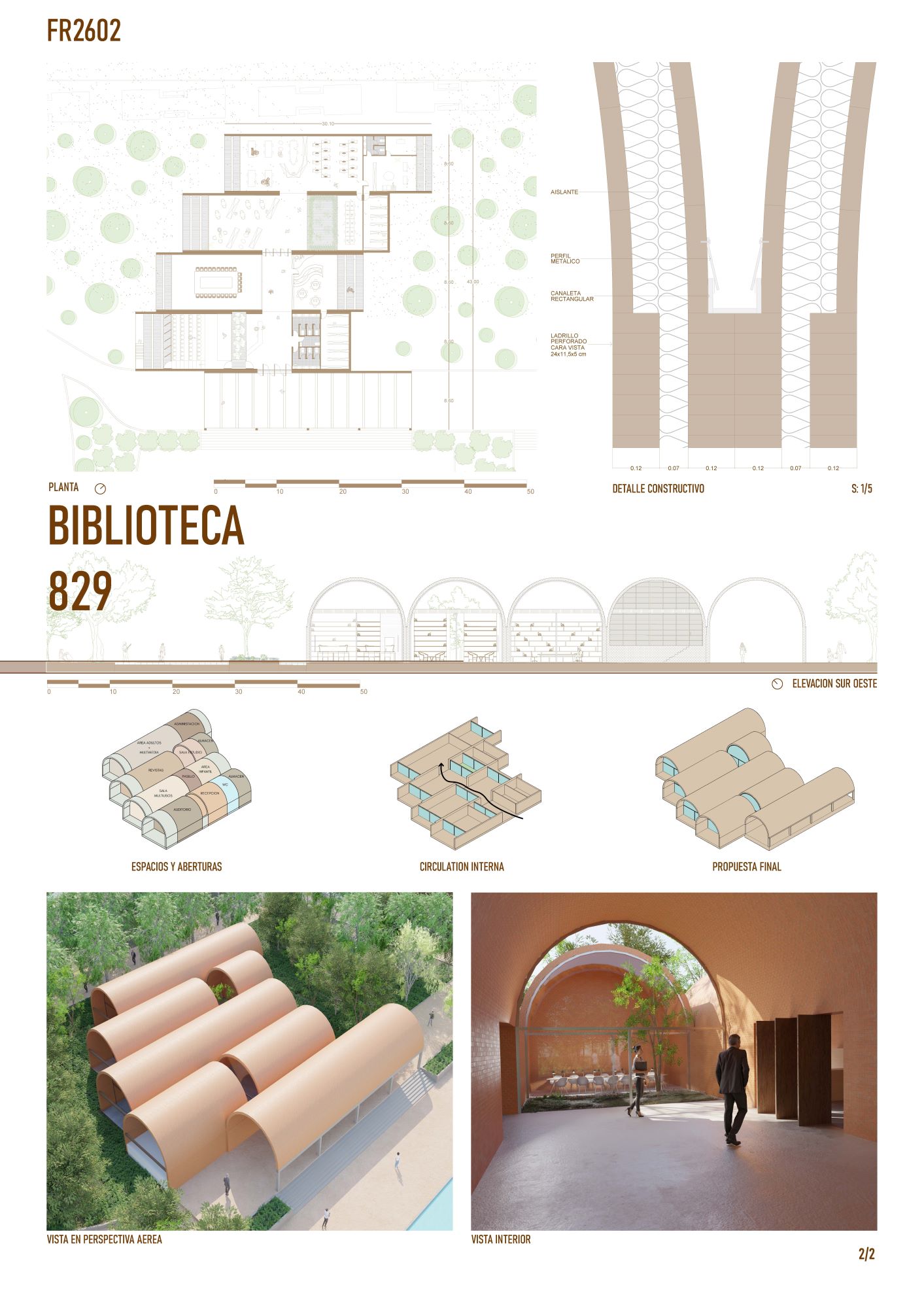 Library 829 reinterprets traditional brick vaults through a contemporary architectural language. In addition, it recovers the artisanal and cultural value of local materials. In this way, the project promotes sustainable architecture based on the conscious use of resources and constructive efficiency. Likewise, it seeks a balanced integration with the urban landscape and fosters a harmonious relationship between tradition and modernity. As a result, the design strengthens the site’s cultural identity while creating a direct connection with its natural surroundings.